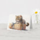 Watercolor artwork of a cute cat on a box for a birthday.