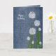 White puff flowers on blue jean denim background with cute ladybugs general birthday.