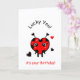 This adorable folded birthday card features a heart-shaped ladybug in red and black, surrounded by sweet hearts on a clean white background. A charming and cheerful design that feels warm, joyful, and full of affection.