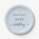 Birthday light blue silver glitter dust monogram paper plates