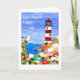 A Birthday Card with 'Happy Birthday' in Welsh and a lighthouse scene from a handpainted paper collage by Judy Adamson. I can easily change the front text on request and the inside is left blank for your own message.