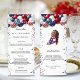 Birthday party menu card. Decorated with patriotic colored balloons in red blue and white, blue and red sparkles. Personalize and add a name, age, date and the menu.