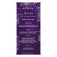 Birthday party menu card. Personalize and add a name, age, date and the menu. A purple background, decorated with faux silver glitter dust. The purple color is uneven. White colored letters.