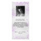 Birthday party menu card. Personalize and add a name, age, date and the menu. Faux silver looking background, decorted with purple, lavender faux glitter dust. Black colored letters.