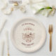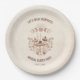 Taupe, ''rosegold'' celestial paper plates with a moon phase and mushrooms, perfect for your next family reunion, garden party, birthday or any magical event. Easily personalize all the text or lave it blank. - Kate Eden Art.