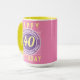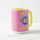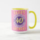 40th birthday mug. Bright colours and bold design. Numbered birthday mug. Design is repeated on both sides. 40 years old.