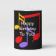 Bright, bold Music Notes of different colors with white text Happy Birthday To You.