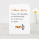 A funny Happy Birthday card, featuring a bad poem and illustration, about Francine The Mystery Cow sending birthday greetings (and the mystery of her name). Our character, tillie, is smiling a bit but looks a little confused while patting Francine's head.