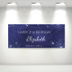 For a girly and glamorous 21st (or any age) birthday party. A navy blue background with elegant faux glitter dust. The blue color is uneven. Personalize and add a name, date and age 21. White letters. The name is written with a modern hand lettered style script with swashes.