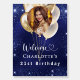 Celebrate in style with this navy blue and gold balloon birthday welcome foam board featuring a fun balloon-shaped photo frame. Perfect for all ages, this personalized party sign makes a striking entrance piece for your event. Add your own photo and custom text to create a unique design that’s especially great for winter celebrations.