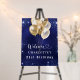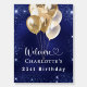 A welcome board for a girly and glamorous 21st (or any age) birthday party. A navy blue background with elegant faux sparkles and golden balloons. The blue color is uneven. Personalize and add a name and age 21. White letters. Welcome with a heart.