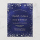 A navy blue background, decorated with faux light gold glitter, sparkles. The blue color is uneven. Personalize and add your name and details. The name is written with a modern hand lettered style script.