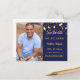 Add a vertical size photo. A navy blue background color, decorated with faux gold stars. Personalize and add a name and the details.