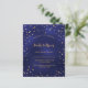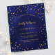 A birthday party invitation for both him and her. A navy blue background decorated with faux gold stars. The blue color is uneven. Personalize and add a name and party details. Golden colored text.