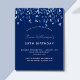 A modern, elegant and invitation. A navy blue background decorated with blue confetti. Personalize and add a name and details. White text.