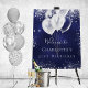 A welcome board for a girly and glamorous 21st (or any age) birthday party. A navy blue background with elegant faux silver dust and white balloons. The blue color is uneven. Personalize and add a name and age 21. White letters.
