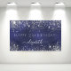 For a girly and glamorous 21st (or any age) birthday party. A navy blue background with elegant faux silver dust. The blue color is uneven. Personalize and add a name and age 21. White letters. The name is written with a modern hand lettered style script with swashes.