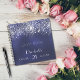 A guestbook for a feminine and glamorous 21st (or any age) birthday party. A stylish navy blue background with faux silver glitter dust. The blue color is uneven. Add your name, age 21 and dates.