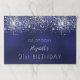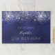 A navy blue background with silver faux glitter dust. The blue color is uneven. Personalize and add a date, name and age 21. The name is written with a modern hand letteres style script.