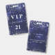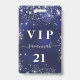Birthday navy blue silver glitter vip invitation badge