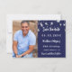 Add a vertical size photo. A navy blue background color, decorated with faux silver stars. Personalize and add a name and the details.