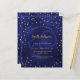 A glamorous birthday party invitation for both him and her. A navy blue background decorated with faux gold stars. The blue color is uneven. Personalize and add a name and party details. Golden colored text. A large age number as watermark.
