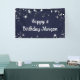 Celebrate any year birthday with this changeable navy blue, silver and white themed banner featuring stars and your custom personal message shown in an editable calligraphy script typography in your choice of text and background colors (shown in white on navy blue ) to coordinate with your party theme or their favorite color. ASSISTANCE: For help with design modification or personalization, color change, resizing, transferring the design to another product or if you would like coordinating items, contact the designer BEFORE ORDERING via the Zazzle Chat MESSAGE tab below or email makeitaboutyoustore@gmail.com.