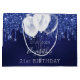 A gift bag for a girly and glamorous 21st (or any age) birthday. A navy blue background decorated with glitter drips and white balloons. The blue color is uneven. Personalize and add a date, name and age 21. The text: The name is written in white with a modern hand lettered style script