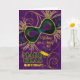 Purple background with the traditional additions of green and gold on this Mardi Gras birthday greeting with a feathered mask and party hat. An exclusive design from the SalonOfArt.