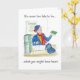 A light-hearted birthday card for an older woman with a pen and wash painting of a woman signing copies of her newly published book. . The text on the front says, 'It's never too late to be what you might have been'. Inside message is 'Happy Birthday' but you can customize it to make it a Retirement card also.