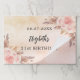 A paper placemat, placemats for a 21st (or any age) birthday party table setting. A rose gold and blush pink gradient background. Decorated with pink flowers and pampas grass. Personalize and add a date, name and age 21.