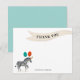 This flat thank you note card has lots of space to write a simple "thank you" message to birthday gift givers after the celebration and features a fun waving banner and a zebra wearing a party hat holding balloons.