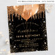 For an elegant 18th (or any age) birthday party. A stylish black background. Decorated with dark faux gold glitter and balloons. Personalize and add a name, age and party details. The name is written with a hand lettered style script