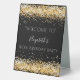 A sign for a girly and glamorous 50th (or any age) birthday party. A black background with faux gold glitter dust. Personalize and add a text, name and age 50. The name is written with a modern hand lettered style script.