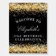A sign for a girly and glamorous 21st (or any age) birthday party. A black background with faux gold confetti. Personalize and add a text, name and age 21. The name is written with a modern hand lettered style script.