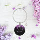 An elegant black background decorated with purple faux glitter drips. Personalize and add a name. The name is written with a modern hand lettered style script.