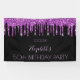 A banner for a girly and glamorous 50th (or any age) birthday party. A chic black background with elegant purple faux glitter drips, paint dripping look. The text: Personalize and add a name written with a light purple color in a modern hand lettered style script. Templates for a date and age 50. Perfect both as a welcome banner or as party decor.