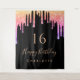 A trendy and glamorous Sweet 16, 16th (or andy age) birthday tapestry. A classic black background decorated with rainbow colored faux glitter drips, paint dripping look in purple, pink and rose gold. With the text: 16 Happy Birthday. Personalize and add a name. Golden colored text.