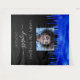 A tapestry for a girly and glamorous 21st (or any age) birthday party. A black background with royal blue paint dripping look. Personalize and add your own high quality photo of the birthday girl. The text: The name is written with a modern hand lettered style script with swases. To keep the swashes only delete the sample name, leave the spaces or emoji's in front and after the name. Tempates for a name, age 21 and a date. Can be used as wall decor for the party or as a photo booth backdrop.