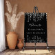A welcome board for a girly and glamorous 21st (or any age) birthday party. A classic black background decorated with faux silver light, stars. Personalize and add a name and age 21.