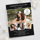 Create your own unique photo collage. Use four, 4 of your favorite photos. Personalize and add a name and party details. Black background, white text.