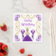 This birthday napkin features an elegant gold frame, a beautiful princess with blonde hair and a purple dress, flowers and a balloon. This is perfect for a birthday party.
