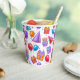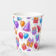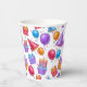 A Colorful Birthday Party Celebration Paper Cup Patterned In Party Hats, Balloons and Cupcakes