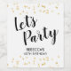 This elegant but playful birthday party wine label design features script "Let's Party" typography in black framed by gold faux foil confetti. Just add your custom name and text. (Note: The gold look of the confetti is achieved with a printed image, and is not metallic ink or foil.)