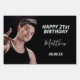 An outdoor sign celebrating a 21st (or any age)milestone birthday for a guy, man. An elegant modern black background. Personalize and add your own photo of the birthday boy/man. The text: The name is white with a modern hand lettered style script. Tempates for a name, age 21 and a date