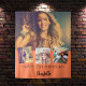 A tapestry for a 21st (or any age) birthday party. A soft coral, orange colored background. Personalize and add 4 high quality photos of the birthday girl. The text: The name in black with a modern hand lettered style script. Tempates for a name, age. Can be used as wall decor for the party or as a photo booth backdrop.