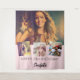 A tapestry for a 21st (or any age) birthday party. A soft pink background. Personalize and add 4 high quality photos of the birthday girl. The text: The name in black with a modern hand lettered style script. Tempates for a name, age. Can be used as wall decor for the party or as a photo booth backdrop.