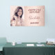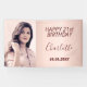 A banner celebrating a 21st (or any age)milestone birthday for a girl, woman. An elegant trendy rose gold, pink gradient background. Personalize and add your own photo of the birthday girl. The text: The name in dark burgundy with a modern hand lettered style script. Tempates for a name, age 21 and a date. Can be used as a party welcome sign, party wall decoration and as a keepsake.