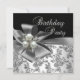 Birthday Party Damask Pearl Silver White Black Invitation