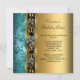 Birthday Party Damask Teal Blue Gold 2 Invitation